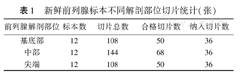| 前列腺解剖部位 | 标本数 | 切片总数 | 合格切片数 | 纳入切片数 |