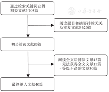 笔者以"骨巨细胞瘤""骨巨细胞瘤复发""骨巨细胞瘤转移"和"giant cell tumor of bone""recurrence of giant cell tumor of bone""metastasis of giant cell tumor of bone"等中英文关键词,在PubMed、中国知网、万方和大医医学等中英文数据库检索2001年1月—2018年12月的文献资料。文献的纳入标准:骨巨细胞瘤复发转移方面的基础研究及临床研究。排除标准:(1)无法获取全文的文献;(2)研究内容重复的文献;(3)非重点研究骨巨细胞瘤复发转移的文献。共检索文献5 703篇,最终纳入40篇文献,包括9篇中文文献和31篇英文文献(图1)。笔者归纳和总结GCTB复发、转移机制方面的研究进展,以期为寻找新的诊治靶点提供必要的实验及理论依据。