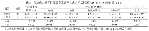 两组成人发育性髋关节发育不良患者术后髋部VAS和HHS比较(分,