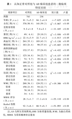 认知正常对照组与AD痴呆组患者的一般临床特征比较