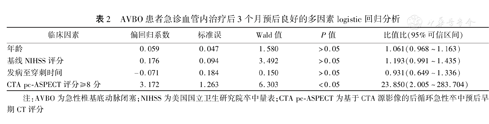 AVBO患者急诊血管内治疗后3个月预后良好的多因素logistic回归分析