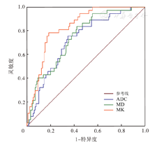 注:ADC为表观弥散系数;MD为平均弥散系数;MK为平均峰度系数