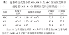 DKI参数(MD、MK)以及ADC值均可用于直肠腺癌UGT1A1*28基因突变的预测。