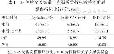 注:VAS为视觉模拟评分法;IKDC为国际膝关节文献委员会
