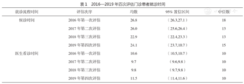 | 候诊时间 | 2016年第一次评估 | 26.8 | (26.3,27.1) | 18 |