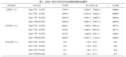 | 住院费用 | 评估次序 | 平均数 | 95%置信区间 | 中位数 |