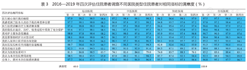 基于全国"进一步改善医疗服务行动计划"2016—2019年连续四次的第三方评估之住院患者调查结果,对相同指标调查结果进行比较和描述性分析。