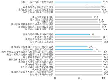 | 我在治疗常见病、多发病时发挥了中医药的独特作用 | 68.6 | 69.7 | 67.9 | 67.8 | |
