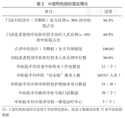 注:1家民族医院因不适用于中医特色指标,故表2数据仅收集37家中医医院数据