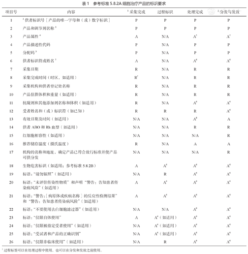 标识:细胞疗法产品所需或可选择的信息,包括内容、标识、过程说明、存储要求、有效期、警告声明和(或)使用说明。