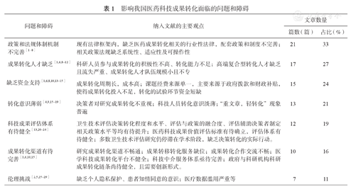 影响我国医药科技成果转化面临的问题和障碍