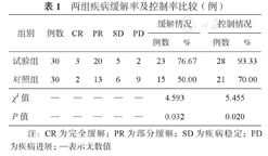 | 组别 | 例数 | CR | PR | SD | PD | 缓解情况 | 控制情况 | ||