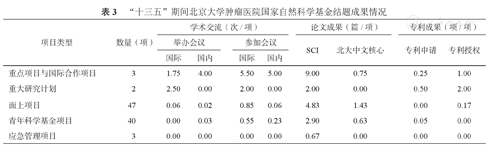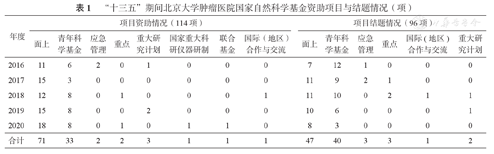 "十三五"期间北京大学肿瘤医院国家自然科学基金结题成果情况
