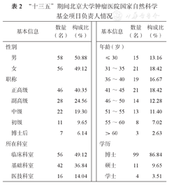 "十三五"期间北京大学肿瘤医院国家自然科学基金项目负责人情况