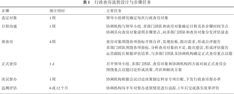 | 正式查房 | 1 d | 召开领导小组、多部门团队、查房对象和协调机构四方面对面正式查房会 围绕重点议题讨论形成决策、共识和解决方案 |