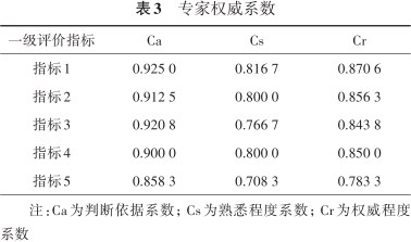注:Ca为判断依据系数;Cs为熟悉程度系数;Cr为权威程度系数
