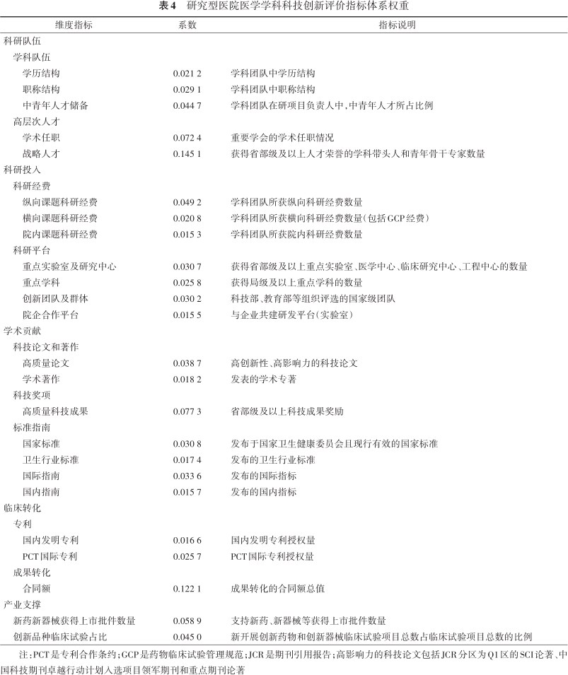 | 重点实验室及研究中心 | 0.030 7 | 获得省部级及以上重点实验室、医学中心、临床研究中心、工程中心的数量 |