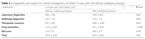 Comparative cost analysis for clinical management of COVID-19 case with and without underlying diseases