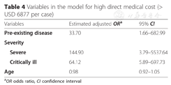 Variables in the model for high direct medical cost (> USD 6877 per case)