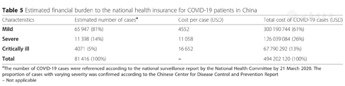 Estimated financial burden to the national health insurance for COVID-19 patients in China