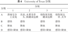 | 分级 | 破溃范围 | 深度 | 感染 | 动脉病变 | 神经病变 |