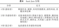 | 1型(感染型) | 蜂窝织炎、脓肿、坏死性筋膜炎、湿性坏疽、骨髓炎和足癣 |