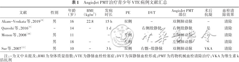 AngioJet PMT治疗青少年VTE病例文献汇总