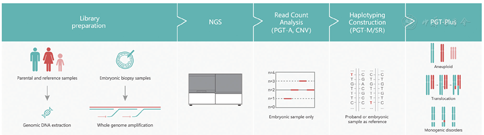 Currently, genetic conditions are detected separately by the PGT process via different technical platforms, which could be laborious, expensive, and may require repeat family-specific preparation. Compared with the traditional detection methods of PGT-A, PGT-SR, and PGT-M, a cost-effective, comprehensive, and universal platform for embryo testing in patients with different genetic disorders, coined as PGT-Plus, is worth developing.