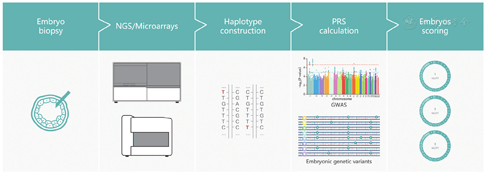 The above PGT technologies focus on Mendelian genetic disorders that reflect the inheritance of a single causative gene. However, polygenic diseases account for a large percentage of premature human deaths and have occurred markedly more frequently than monogenic disorders in the past 25 years[112]. According to WHO’s World Health Statistics reports in 2021[113], except COVID-19, seven of the 10 leading causes of death globally were chronic non-communicable diseases (NCDs), including cancers, cardiovascular diseases, diabetes, chronic respiratory diseases, and others, accounting for 73.6% of all deaths in 2019. NCDs are primarily polygenic disorders caused by the additive and interactive effects of multiple genes[114]. PGT-P is a genetic test explicitly designed for polygenic disease risk evaluation. Schulman and Edwards first proposed the concept in 1996 based on their assertion that "many of the major human traits are highly polygenic, and a large number of genes may possibly be analyzed in embryos in the near future" [115]. As the name suggests, PGT-P involves a biopsy of each embryo and ranks the embryos for polygenic risk based on genomic data, selecting embryos with the lowest polygenic disorder risk for implantation (Fig. 4). However, this idea did not become a reality until Treff et al. screened embryos clinically for type 1 diabetes in 2019[116]. This group later extended their research to tens of thousands of sibling pairs to evaluate the clinical utility of PGT-P for embryo selection[117].