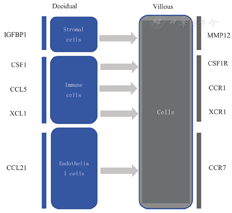 Normal fetal development requires complex interactions between placental and maternal decidual cells. In the early stages of pregnancy, the endometrium is transformed into the decidua under the coordinated action of steroid hormones such as estrogens and progesterone. Once a blastocyst is implanted, extravillous trophoblast cells (EVTs) invade the maternal decidua and blood vessels. The depth of trophoblast invasion is finely controlled by various cell types in the decidua[1]. Meanwhile, the presence of special immune cell populations in the maternal placenta (decidua), the point of integration for two semi-allogeneic individuals, make the decidua a special immune site, that is usually in a state of relative immunosuppression. These immune cells include decidual natural killer (dNK) cells, macrophages (dM), regulatory T cells (Tregs), and dendritic cells (dDCs), etc.[2]. Decidual cells within this specific microenvironment communicate with placental trophoblast cells to form the maternal-fetal interface. Interactions among different decidual cells and trophoblast cells optimize the mother-fetal exchange of gases (O2 and CO2), nutrient delivery to the fetus, and fetal and placental metabolic wastes removal to support fetal development and survival. Every pair of interacting cells from maternal and fetal interests can be regarded as units with interaction networks. The joint detection of the cell-cell crosstalk is conducive to our understanding of the construction of maternal-fetal interface networks.