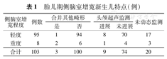 共3例新生儿合并其他异常,其中2例进行了随访。1例为胎龄29周时发现左侧颞叶靠近中线旁蛛网膜囊肿压迫左侧脑室,动态观察右侧脑室积水逐渐增多。另1例胎龄23周时发现侧脑室增宽,左侧0.97 cm,右侧1.07 cm,动态监测脑室逐渐扩大,胎龄34周时左侧脑室宽度1.3 cm,右侧1.4 cm;胎龄32周时胎儿磁共振成像显示小脑延髓池大、小脑小,生后超声提示双侧脑室增宽,双侧脑室深1.71 cm,丘脑基底核小、额叶厚度低。