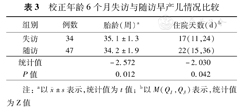 CA 6±1.5月时失访与随访早产儿比较,随访早产儿出生胎龄偏低、住院时间偏长,与失访早产儿比较差异有统计学意义(P<0.05);两组出生及出院时体格生长状况、早期疾病情况、出院后喂养情况等差异均无统计学意义(P>0.05)。见表3。