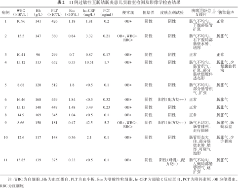 11例过敏性直肠结肠炎患儿实验室检测及影像学检查结果