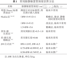 最早的估算法是测量肩最高点到脐水平的垂直距离,然后根据肩-脐关系图计算脐导管置管长度加脐部残端的长度[32]。第2种方法是基于出生体重回归方程的Shukla公式法,此法又分粗略法和精准法,当同时留置脐动脉与脐静脉导管时,可以用粗略法计算;若单独留置脐静脉,则选择精确Shukla公式[33, 34]。另外还有剑突-脐长度法[14]和肩-脐长度粗略法[32]。有研究提示,剑突-脐长度预测成功率最高,Shukla公式预测尖端位置往往过高,Dunn法预测位置偏低[35]。尽管也有研究针对Dunn及Shukla公式进行对比,Dunn法比Shukla法更准确地预测了UVC的插入长度,但Mutlu等[36]认为Shukla公式精确法计算的位置更准确;Kieran等[37]进行的随机试验也支持用体重估计脐静脉置管深度,且不需要额外进行术前测量,因此,Shukla法在临床应用相对广泛。近年,Krishnegowda等[38]在改良Shukla法的基础上,推出JSS法,此法对超低体重儿进行分层使用不同公式,报道称其与以往所用公式相比,能提高放置在最佳位置的比例。具体见表1。