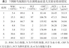 | 病例 | WBC(×109/L) | N(%) | PLT(×109/L) | CRP(mg/L) | PCT(ng/ml) | IL-6(pg/ml) |