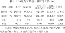 | LOS组 | 76 | 51(67.1) | 32.3±3.9 | 1 778±823 | 16.4±8.8 | 8(10.5) |
