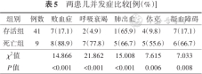 | 存活组 | 41 | 30(73.2) | 34.7(33.3,38.0) | 30(73.2) | 2 140(1 715,2 820) | 27(65.9) | 4(9.8) | 3.8±2.6 |
