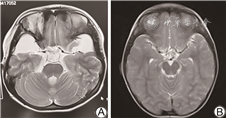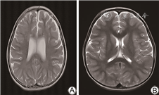 电话回访112例未同意复筛的患儿,其中拒接电话22例,接受电话回访的新生儿家长均回复婴儿生后至今(随访年龄0~3岁)健康。对8例确诊IEM患儿进行追踪随访及智力评估(随访年龄0~3岁),1例甲基丙二酸血症患儿早期头颅MRI显示双侧苍白球区、双侧尾状核头对称片状异常信号;1例戊二酸血症患儿早期头颅MRI提示额叶白质内等T1长T2信号,提示双侧额叶白质脱髓鞘。所有确诊病例均给予对应的治疗,包括特殊奶粉、补充左卡尼汀、维生素B12及尼替西农等,目前均生长发育良好。其中甲基丙二酸血症患儿随访至2岁、戊二酸血症患儿随访至2.5岁时头颅MRI均提示正常,智力正常。见图1、2。
