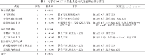 南宁市16 207名新生儿遗传代谢病筛查确诊情况