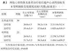 | 组别 | 例数 | 左心室射血分数(%) | 左心室舒张末期内径(mm) | B型利钠肽(pg/ml) | |