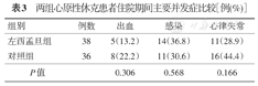 | 组别 | 例数 | 出血 | 感染 | 心律失常 |