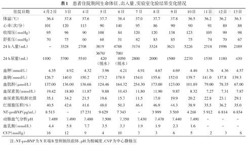 患者住院期间生命体征、出入量、实验室化验结果变化情况