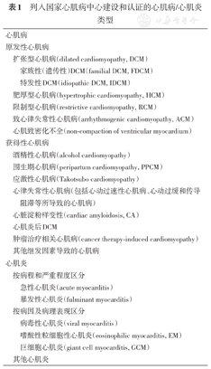列入国家心肌病中心建设和认证的心肌病/心肌炎类型
