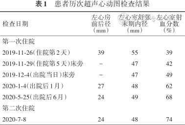 出院医嘱:沙库巴曲缬沙坦25 mg,2次/d,酒石酸美托洛尔25 mg,2次/d,维拉帕米40 mg,2次/d,美西律200 mg,3次/d。