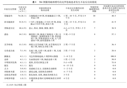 364例服用硫唑嘌呤的克罗恩病患者发生不良反应的情况