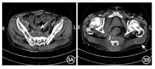 患者男性,36岁,因"间断腹痛腹泻4年伴腰骶部疼痛1年余"入院。患者于2011年因左腹绞痛在当地医院诊断为肠梗阻并行小肠部分切除术,术后病理提示克罗恩病。术后反复出现腹痛、腹泻,间断口服美沙拉嗪治疗。2014年因腹痛、腹泻症状加重,当地医院予糖皮质激素口服。1个月后出现腰骶部不适,结合腹部CT结果诊断腰骶部脓肿,行脓肿切开引流术,同时予抗感染治疗,效果欠佳。2015年5月因腰骶部疼痛加重影响行走,伴有反复高热,来上海交通大学医学院附属瑞金医院进一步就诊。