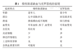 | 临床特点 | 慢性肠道缺血 | 克罗恩病 |