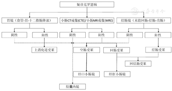 诊断CD时,尤其是对小肠型和小肠-结肠型患者,推荐同时行内镜和影像学检查,以全面评估疾病特征和严重程度,并可作为未来随访对比的基础。对CD缓解期患者,可采用内镜、影像学检查隔年交替的方式随访[31]。