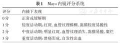参数相对简单粗略,临床上简便实用,但部分定义不够精确,有一定主观性,可作为日常临床诊治中病情活动度分级。黏膜愈合定义为Mayo评分0 ~ 1分,见表1。