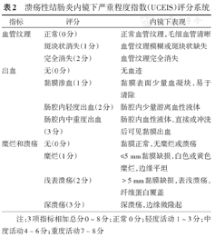 | 浅表溃疡(2分) | >5 mm黏膜缺损,表浅溃疡,纤维蛋白覆盖 | |